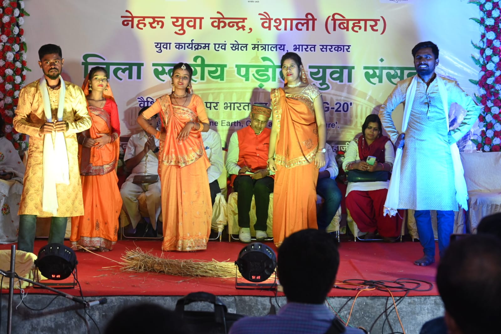कार्यक्रम में मुख्य अतिथि के तौर पर विधायक अवधेश सिंह द्वारा बताया गया की बड़ा अच्छा लगता है जब ग्रामीण क्षेत्र के युवा जिला स्तर पर ऐसे आयोजित पड़ोस युवा संसद कार्यक्रम में पहुंचे है नेहरू युवा केंद्र ,वैशाली (युवा कार्यक्रम एवम खेल मंत्रालय ,भारत सरकार) के तत्वधान में द्वारा G-20 एवम वसुधैव कुटुंबकम के थीम पर जिला स्तरीय पड़ोस युवा संसद कार्यक्रम का आयोजन किया जा रहा है |युवा ही राष्ट्र की शक्ति है जिन्हें राष्ट्र निर्माण में प्रमुख भूमिका निभाने हैं युवाओं के बल पर ही भारत पूरे विश्व में प्रथम स्थान पर आता है आज हमारे देश में सैनिकों का मनोबल काफी ऊंचा है जिससे कि हम अपने दुश्मनों का डटकर सामना कर रहे हैं ।कार्यक्रम के बारे में विस्तृत जानकारी जिला युवा अधिकारी श्वेता सिंह द्वारा जानकारी प्रदान किया और बताया गया कि कार्यक्रम का मुख्य थीम भारत द्वारा G 20 की इस वर्ष अध्यक्षता पर आधारित है और इस वर्ष भारत के पहल पर संयुक्त राष्ट्र द्वारा 2023 को अंतरराष्ट्रीय मोटा अनाज साल के रूप में मनाया जा रहा हैं। इसी उपलक्ष में जिला स्तरीय पड़ोस युवा संसद कार्यक्रम आयोजित किया गया है। जिला युवा अधिकारी श्वेता सिंह ने अपने संबोधन में बताया कि इस कार्यक्रम में दूसरे सत्र में भारत सरकार द्वारा चलाई जा रही है मिशन Life के बारे में जागरूकता उत्पन्न करना है जिससे ज्यादा से ज्यादा युवा अपने दिनचर्या में बदलाव ला सके और क्लाइमेट चेंज में अपना सकारात्मक सहयोग दे सके। अंतिम सत्र में सांस्कृतिक कार्यक्रम के जरिए वसुधैव कुटुंबकम- वन अर्थ,वन फैमिली,वन फ्यूचर तथा अतिथि देवो भव के थीम पर से युवाओं ने अपना सांस्कृतिक कार्यक्रम का प्रदर्शन दिया जिसे लोगों द्वारा सराहा गया।